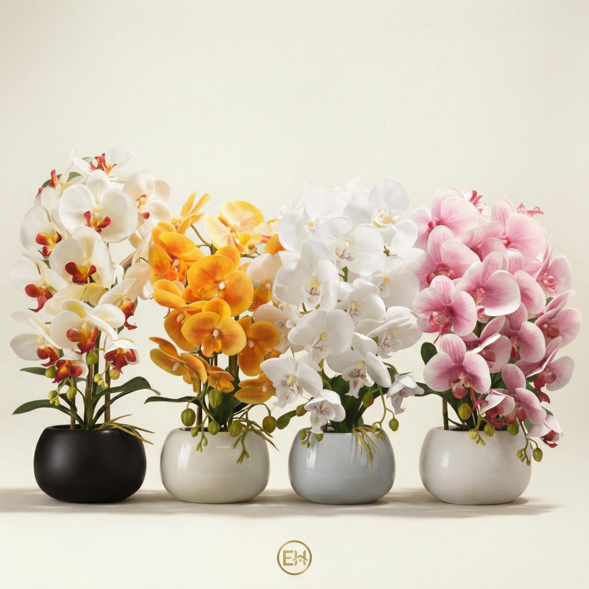 Впечатляющая искусственная орхидея в различных цветах, представленная в современном и изящном горшке. Добавляет нотку естественной красоты в любое пространство дома. Идеально подходит для украшения столов или полок.